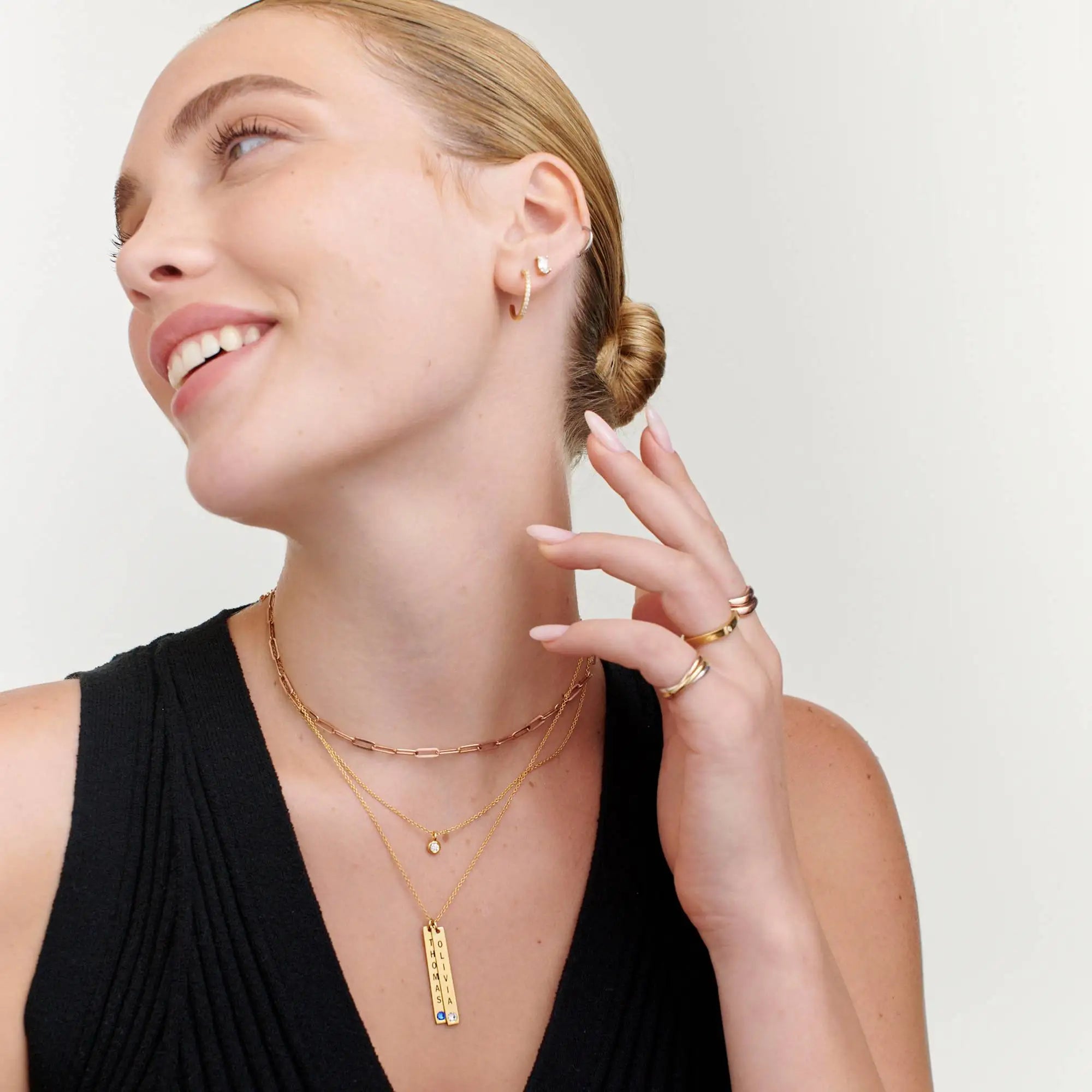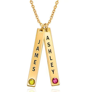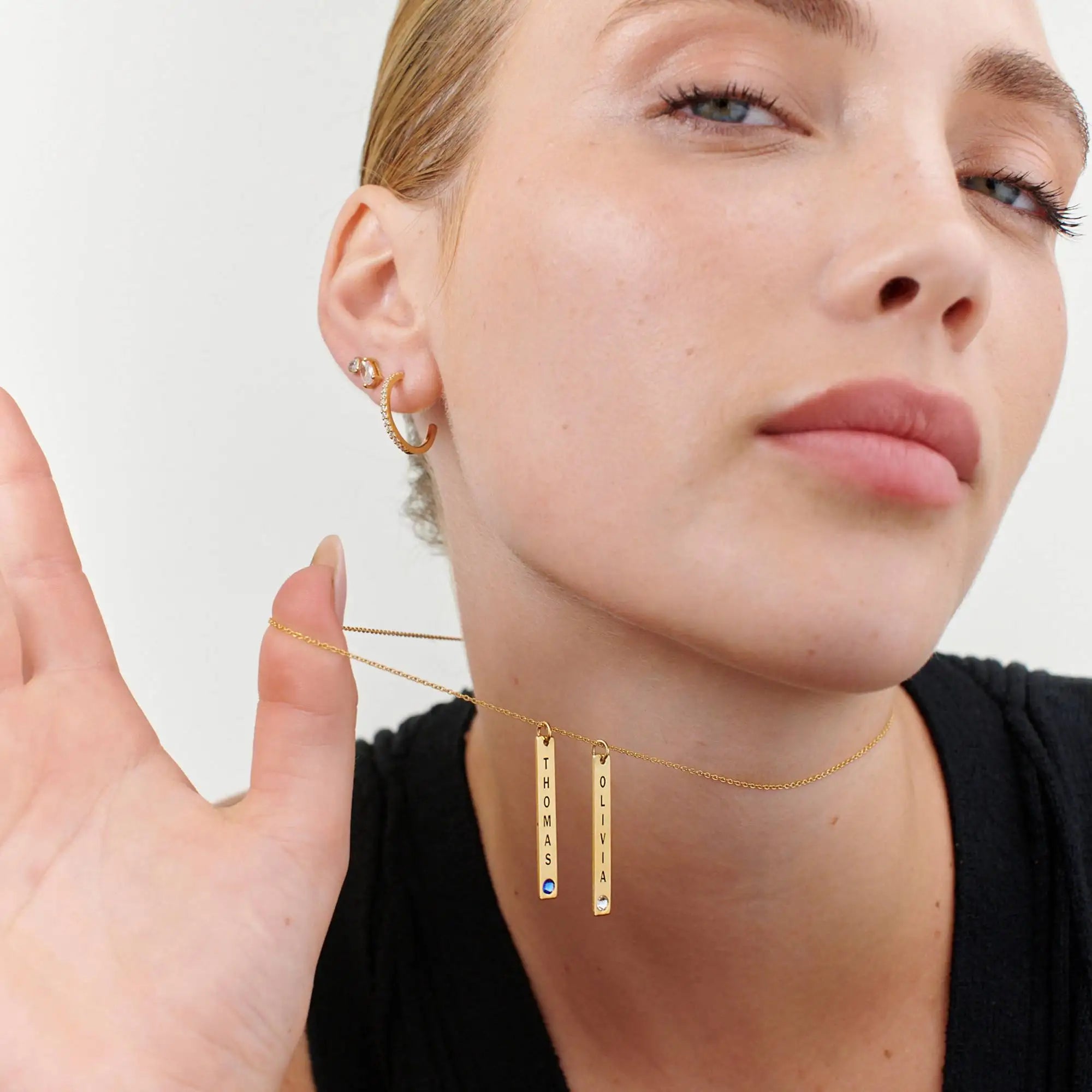 Engraved Vertical Bar Name Necklace with Birthstones Gold