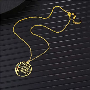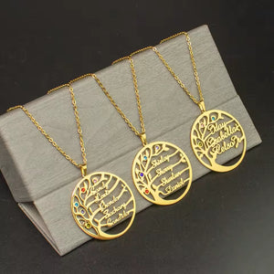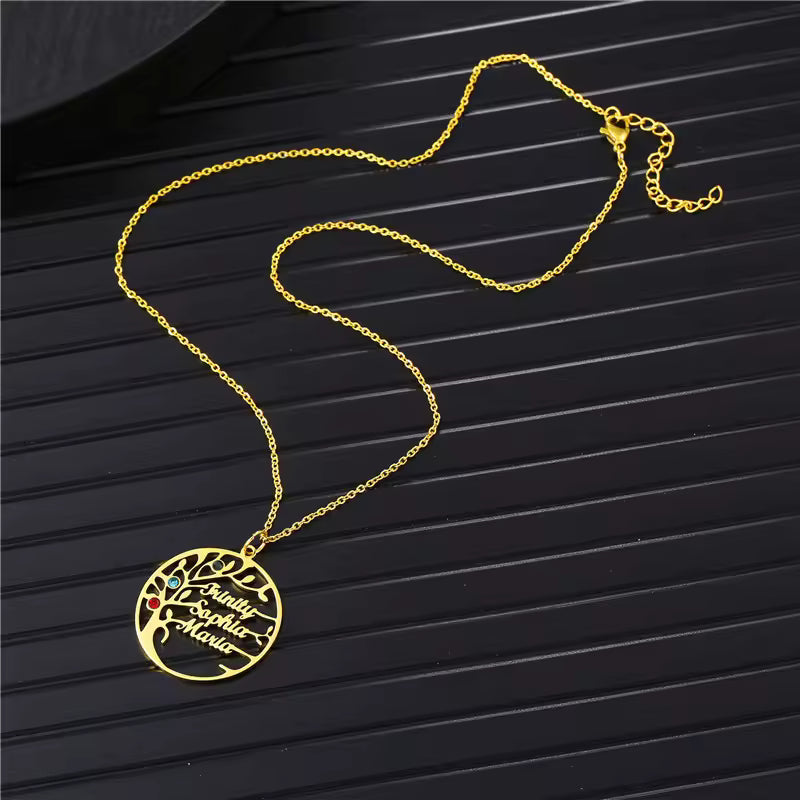 Family Tree Birthstone Necklace with Names Rose Gold