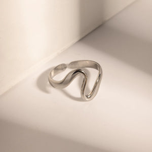 Minimalism meets movement in our Raw Flow Ring with silver finish. Made from durable stainless steel with a high-shine gold-tone finish, this open sculptural ring flows naturally with the contours of your hand. Its organic wave form is bold yet effortless—perfect for everyday styling, stacking, or wearing solo. Waterproof and hypoallergenic, it's built to shine without compromise.