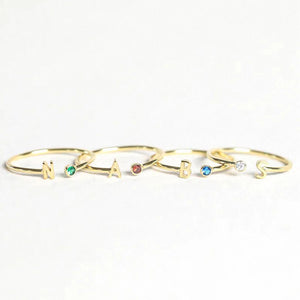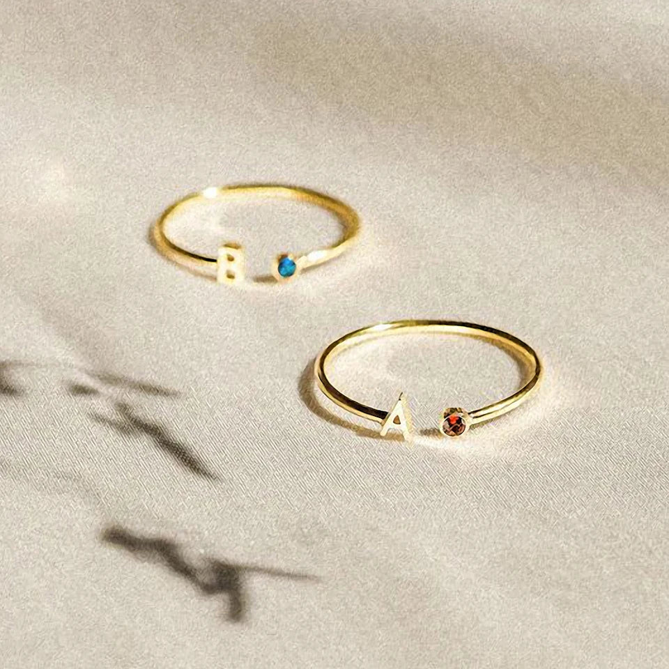 Add a touch of sparkle and meaning to your everyday look with this silver birthstone ring with initial. The sleek silver finish pairs beautifully with the personalized touch of your chosen initial and the dazzling birthstone, creating a piece that's as unique as you are. Whether it's a gift for someone special or a treat for yourself, this ring blends timeless charm with modern style.